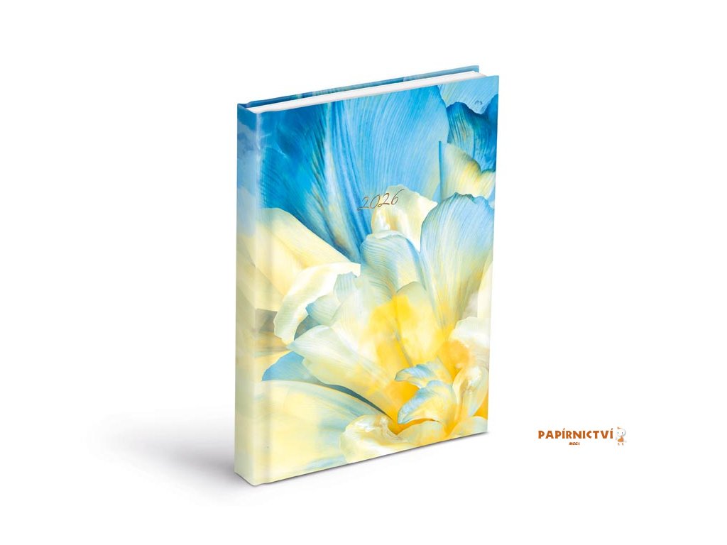 Každý den může rozkvést!Vneste do svého plánování barvy a lehkost! Tento denní diář ve formátu A5 pro rok 2026 okouzlí romantickým květinovým motivem v tónech modré, žluté a bílé. Jemné květy jako malované akvarelem přinášejí do každého dne svěží nádech optimismu a klidu.