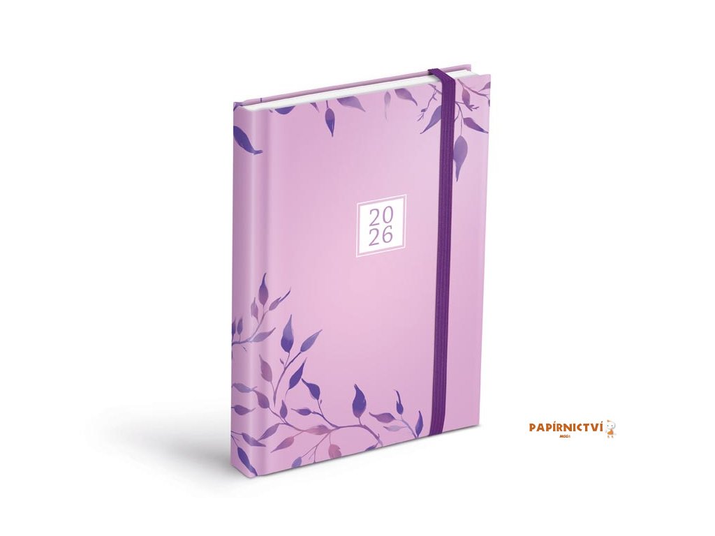 Jemnost a řád v jednom!Plánujte s lehkostí a stylem! Tento denní diář A5 pro rok 2026 okouzlí jemným fialovo-růžovým podkladem s decentními větvičkami ve fialových tónech. Díky praktické gumičce ve výrazném odstínu zůstane vše, co si zapíšete, bezpečně uzavřeno – a vždy po ruce.