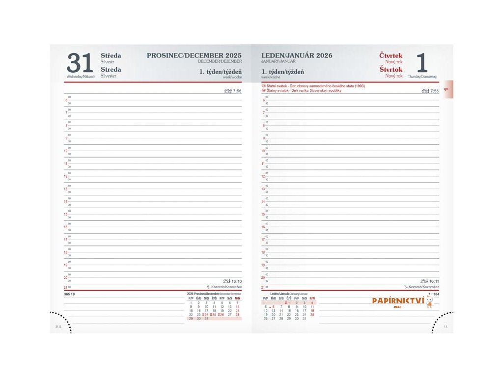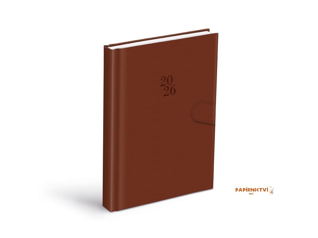 Váš každodenní společník!Elegantní denní diář na rok 2026 ve formátu A5 se zavíráním na magnet je ideálním nástrojem pro ty, kteří chtějí mít své dny pod kontrolou. Stylový design v hnědé barvě působí reprezentativně.