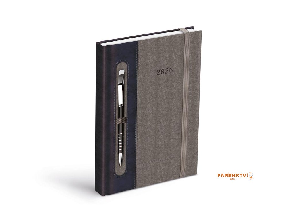 Diář 2026 D801 PU dark blue/gray - na propisku s gumkou 7781457