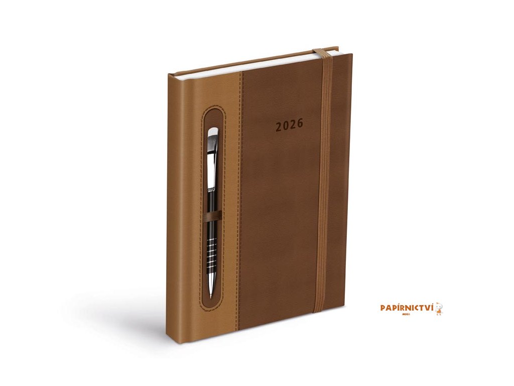 Diář 2026 D801 PU dark brown/beige - na propisku s gumkou 7781456