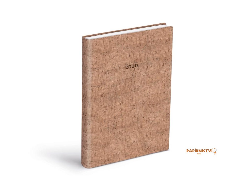 Přirozený vzhled, příjemný na dotek!Denní diář na rok 2026 ve formátu A5 zaujme na první pohled svým neobvyklým povrchem imitujícím přírodní korek. Tento materiál působí moderně a originálně, zároveň dodává diáři osobitý a přirozený vzhled. Příjemná textura (PU) obálky zajišťuje komfort při každodenním používání.