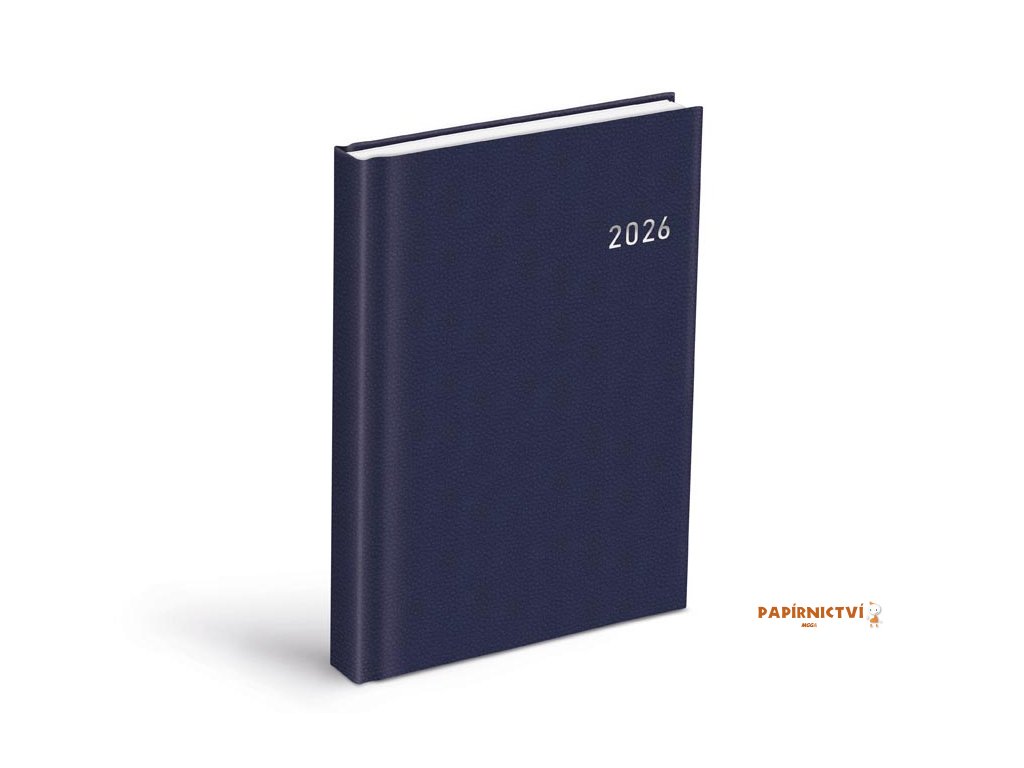 Spolehlivý partner pro každý pracovní den!Denní diář 2026 ve formátu A5 v elegantní tmavě modré barvě zaujme jednoduchým, ale profesionálním vzhledem. Obálka je vyrobena z odolného PVC, které zajišťuje dlouhou životnost a bezproblémové každodenní používání.