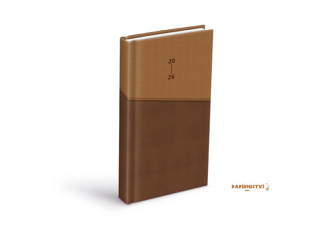 Diář 2026 D802 PU dark brown/beige 90x170mm 7781497