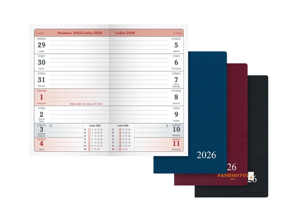 PVC povrch dodává diáři nejen odolnost, ale i moderní vzhled, který si snadno najde místo v každé tašce nebo na stole. Je to diář pro každého, kdo ví, že správné plánování je klíčem k úspěchu.