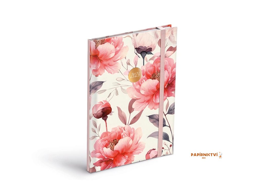 Vstupte do nového roku s přehledem!Rok 2026 může začít stylově – s tímto nádherně zpracovaným týdenním diářem ve formátu A5, který zaujme jemným květinovým motivem v romantických tónech. Elegantní obálka ve světle šedém provedení je opatřena matným laminem s parciálním lakem, který vytváří působivý kontrast matných ploch a lesklých detailů a zároveň chrání diář před poškozením. Diář uzavírá praktická gumička ve sladěné barvě.