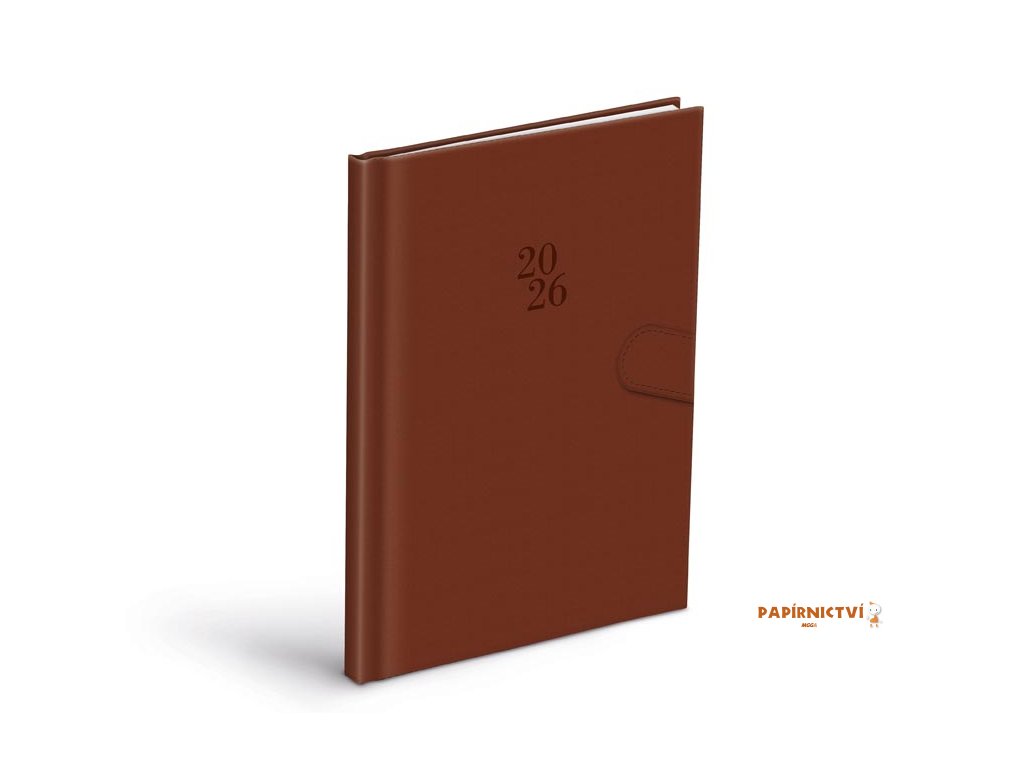 Pomocník na ceký rok!Tento týdenní diář ve formátu A5 zaujme elegantním provedením v hnědém tónu a jemnou strukturou povrchu. Ražený letopočet „2026“ na obálce dodává diáři decentní a nadčasový vzhled.