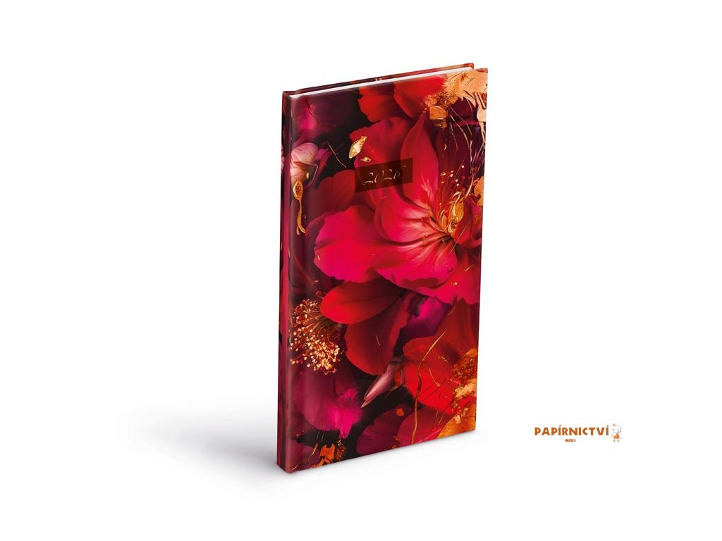 Odvážný design pro odvážné plány!Týdenní diář 2026 upoutá na první pohled svým sytým, intenzivním designem. Bohatý květinový motiv v odstínech červené, vínové a zlaté působí energicky, žensky a luxusně – ideální volba pro ty, kteří se nebojí výrazného stylu.