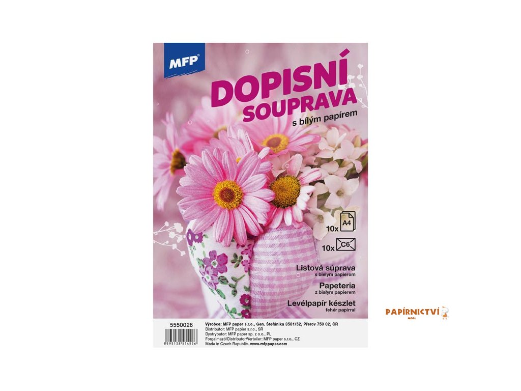 Dopisní souprava s bílým papírem - bez linek - Sada určená pro posílání dopisů. Pořiďte si k soupravě také naše propisky, gelové pera nebo kuličková pera.