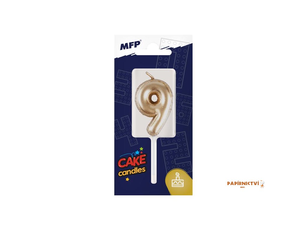 Dortová svíčka MFP balonek č. 9 zlatá 8800123