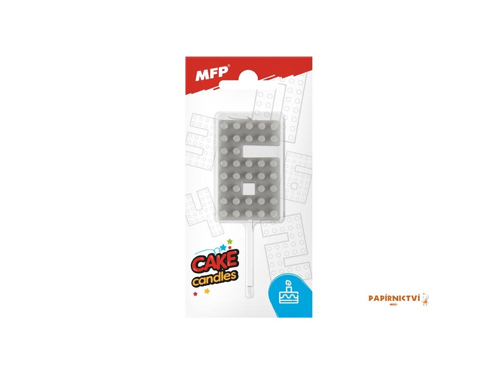 Dortová svíčka ve tvaru čísla 6, v šedé barvě a lego designu. Pořiďte oslavenci dortové svíčky, které dozdobí už tak dokonalý dort a splní oslavenci jeho tajné přání!Motiv: lego