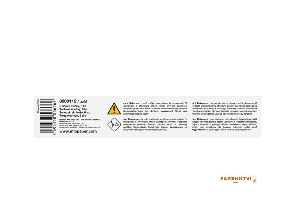 Dortové svíčky MFP 6ks 14cm zlaté 8800112