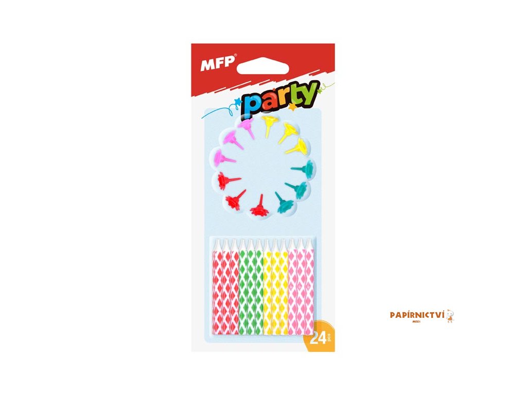Dortové svíčky MFP barevné 24ks+12ks držák 8800063