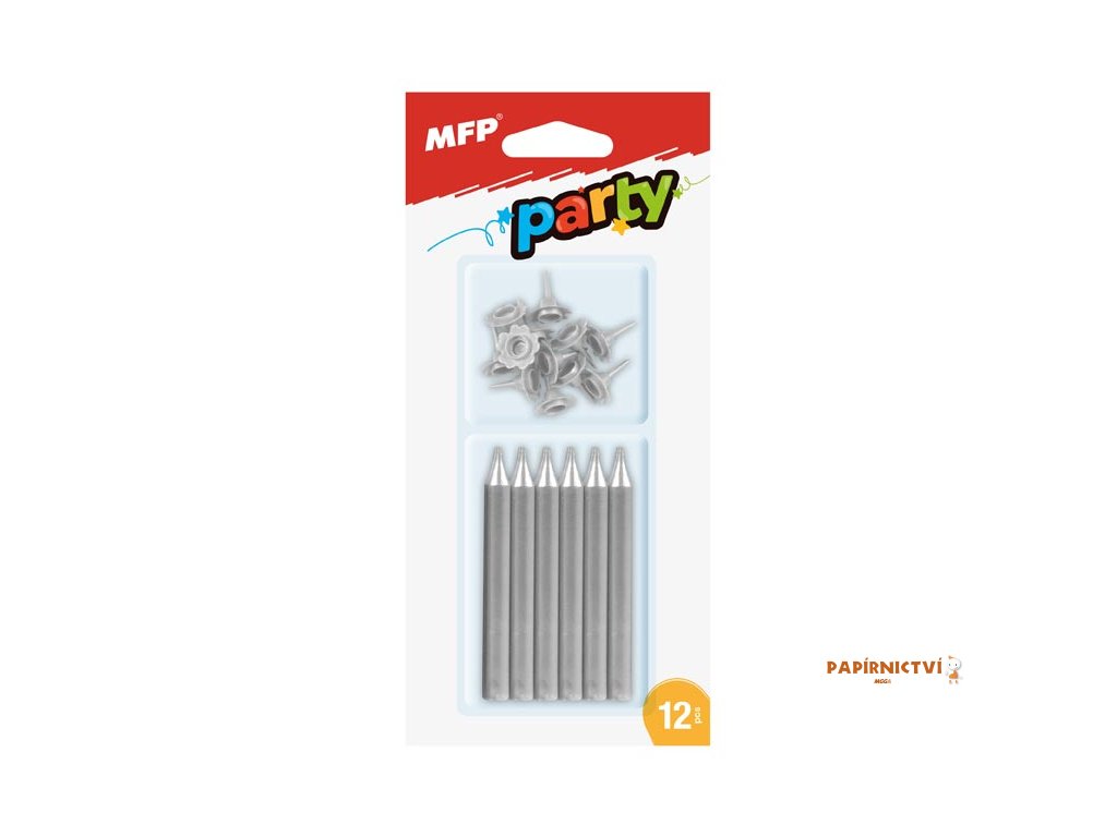 Dortové svíčky MFP stříbrné 12ks+12ks držák 8800078