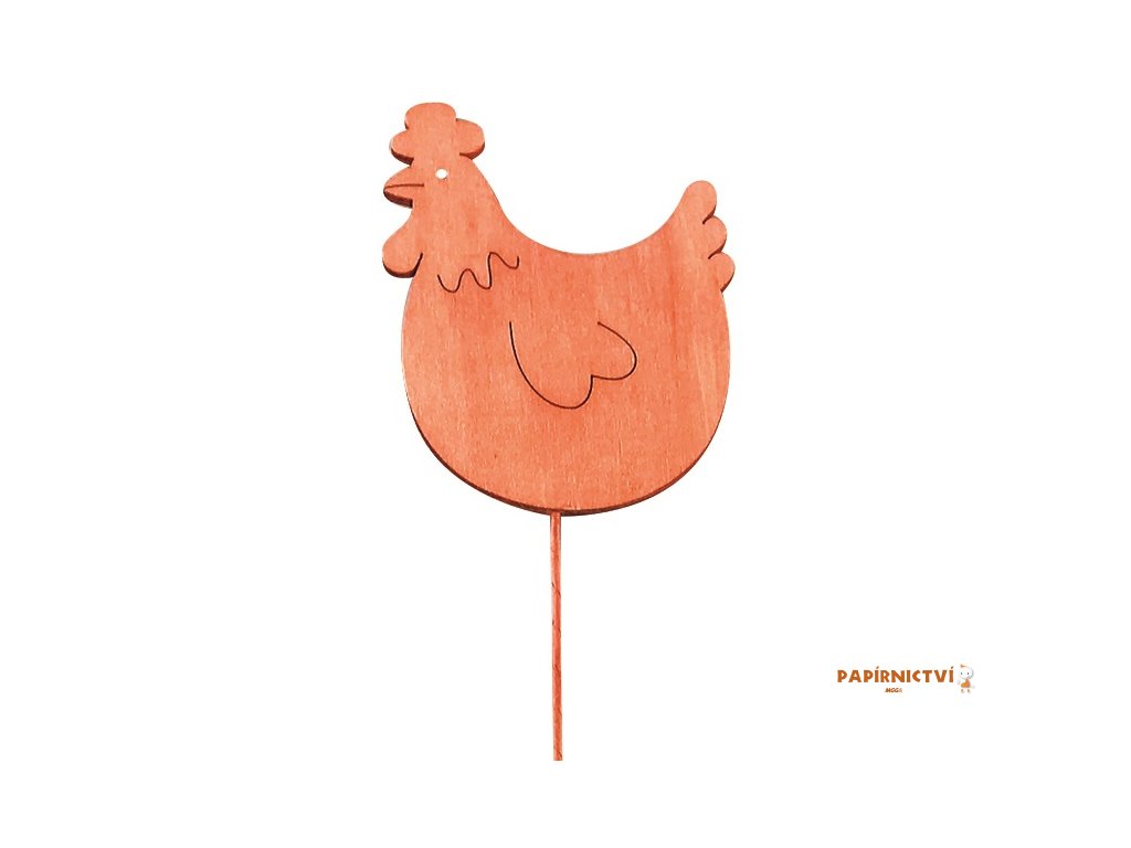Dřevěná slepička 8 cm oranžová + drátek 4128