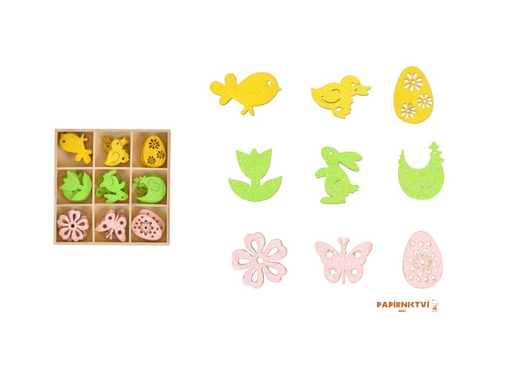 Dřevěné velikonoční dekorace - 3 cm - Vyzdobte si svůj byt velikonočními dekoracemi a přivítejte tak svátky jara. Tyto dřevěné dekorace můžete použít na dekorování velikonočních věnců, košíčků, větviček apod.BALENÍ OSBAHUJE:
