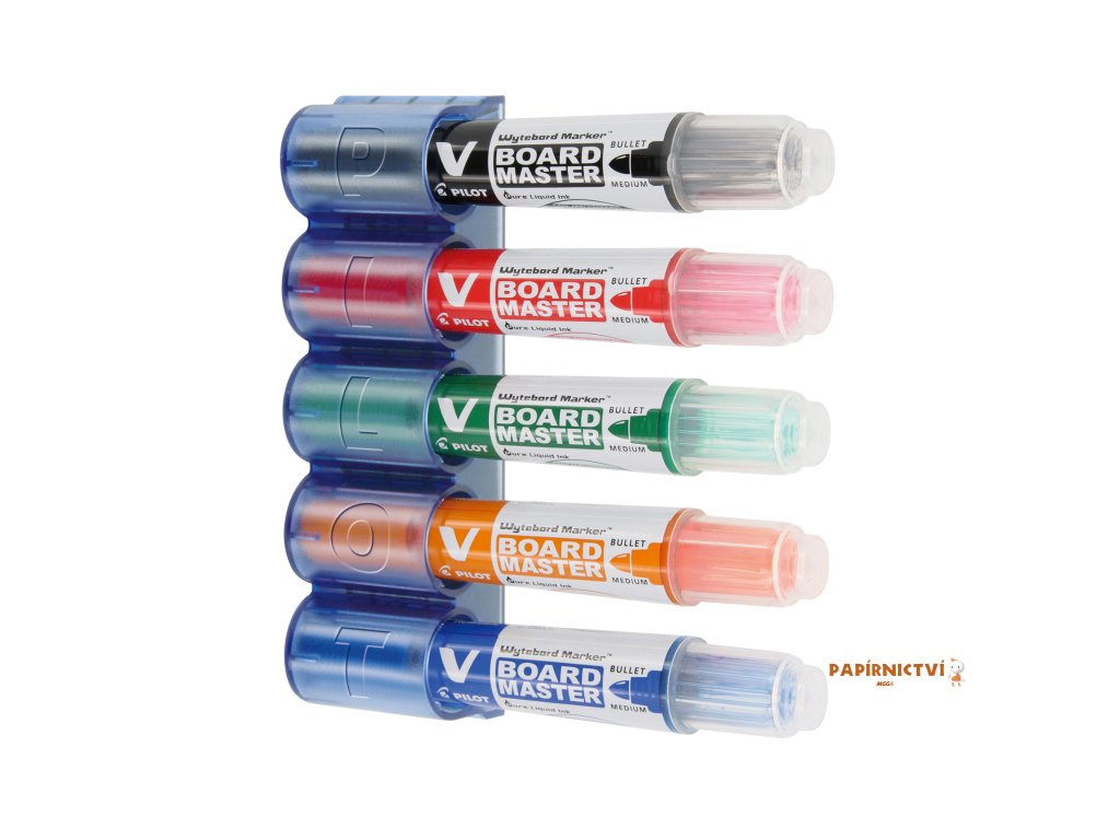 Sada 5ks popisovačů Pilot na bílé tabule V-BoardMaster + držák + houba