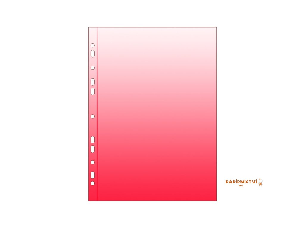 Obal na dokumenty vhodný pro zavěšení do pořadače. Červený průsvitný polypropylen, hladký, síla 50 mic. Pro formát A4-vkládání shora.