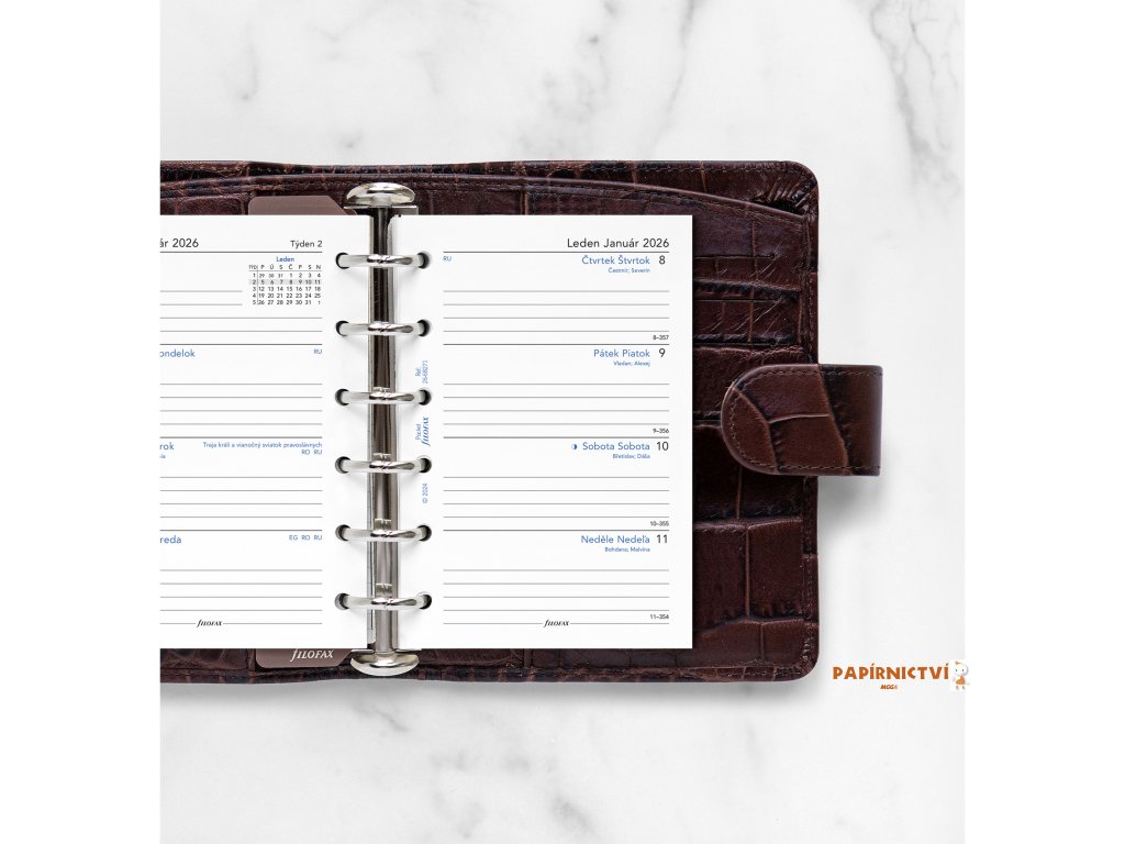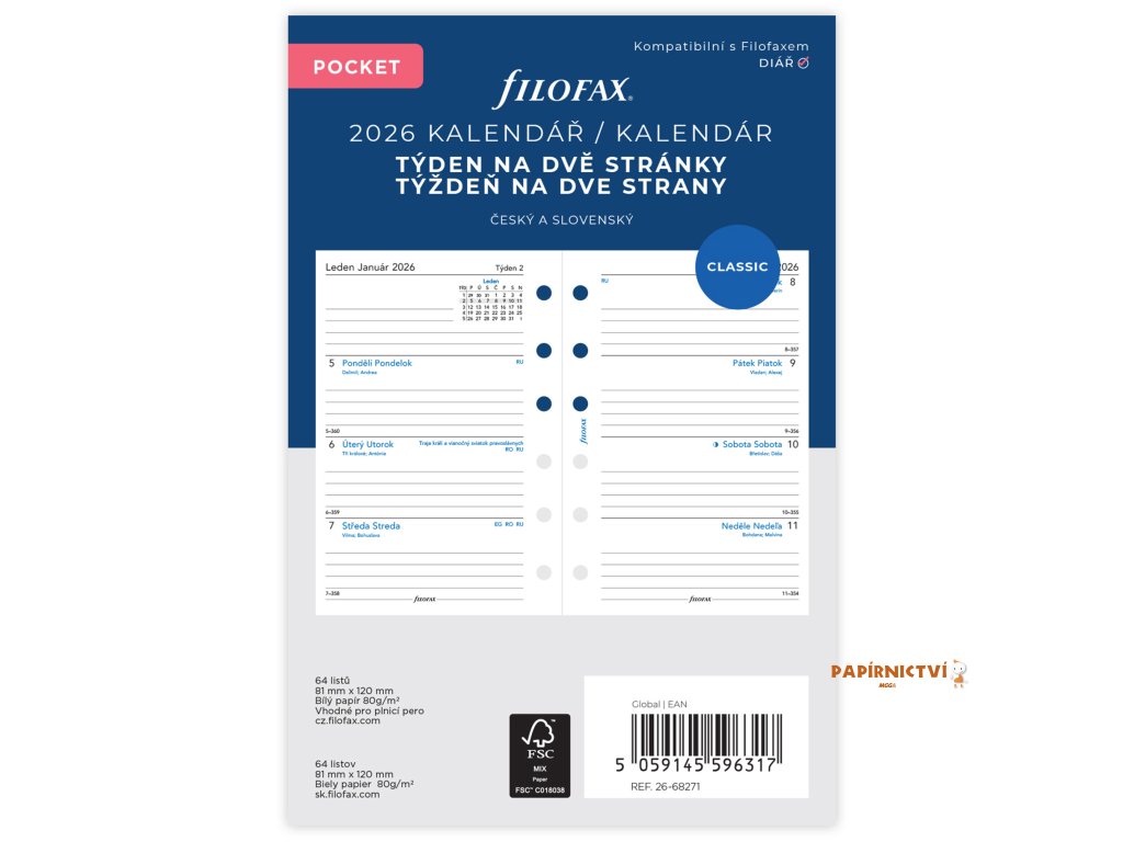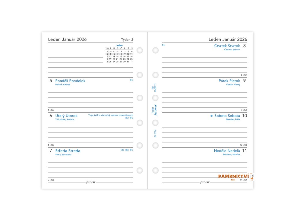 Filofax, kalendář 2026 kapesní, týden/ 2 strana, linky, ČJ+SJ