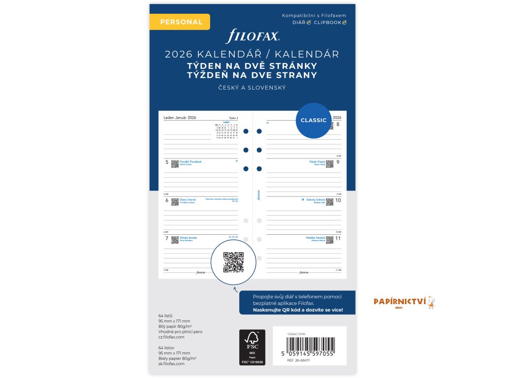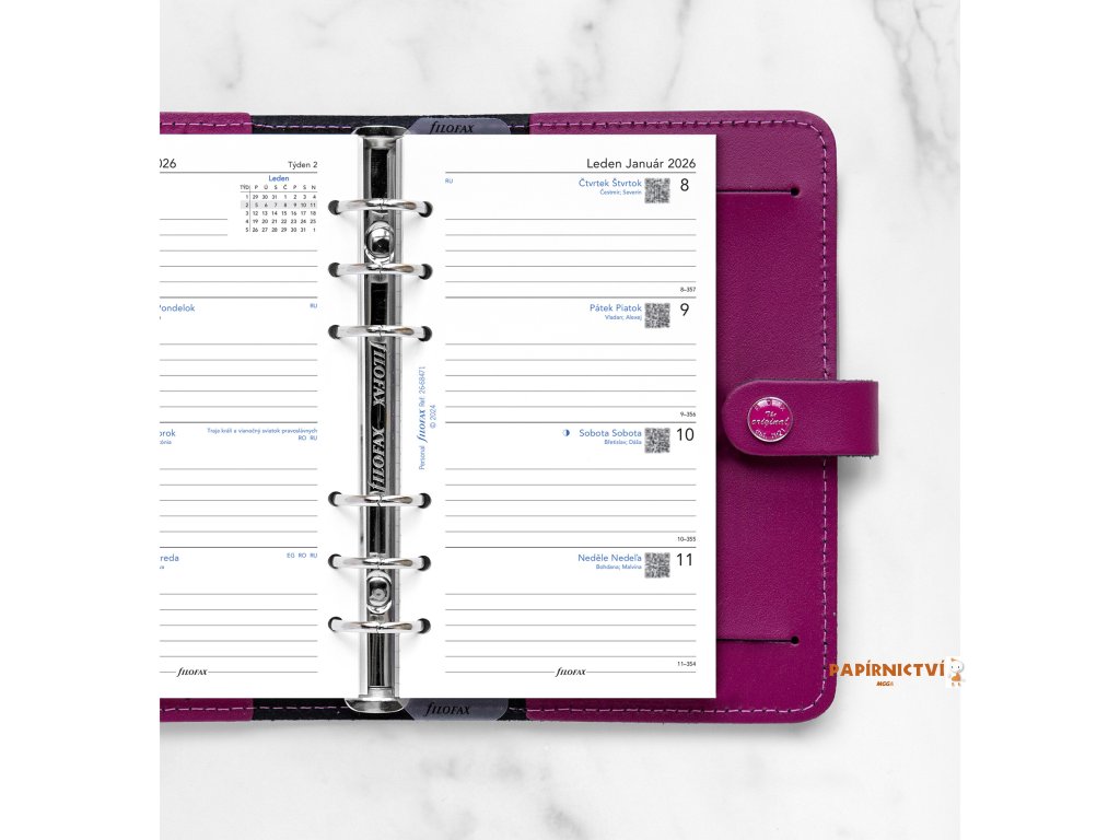 Filofax, kalendář 2026 osobní, týden/ 2 strana, linky, ČJ+SJ