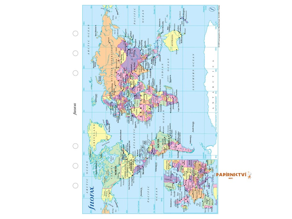 Mapa světa s politickým rozdělením a časovými pásmy.Doplňkové parametry
