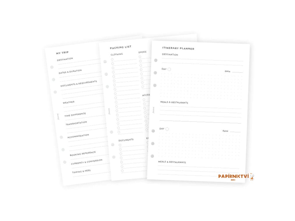 Je čas sbalit si kufry a vyrazit za dobrodružstvím s naší náplní Plánovaní cestování. Zůstaňte neustále organizovaní díky stránkám s podrobnostmi o výletech, rezervacemi a spoustou prostoru pro poznámky o rozpočtech, itinerářích a seznamech na balení.