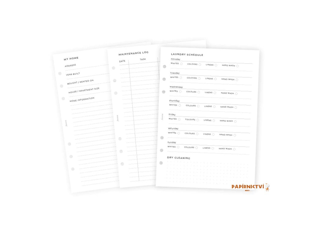 Filofax, Náplň A5, plánování domácnosti