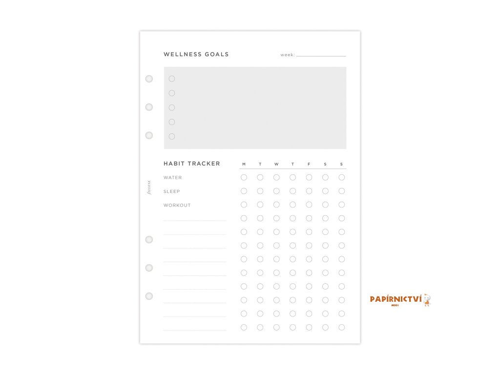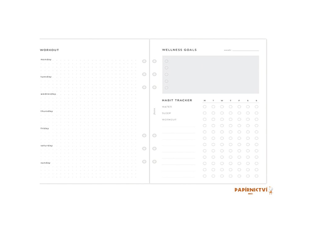 Tato náplň je celá jenom o Vás. Je zde prostor pro cvičení, wellness cíle či sledování návyků. To všechno navrženo tak, aby Vám to pomohlo postarat se o své tělo a duši. Kompatibilní s Vašim diářem Filofax a zápisníkem Clipbook. 56 listůDalší vlastnosti