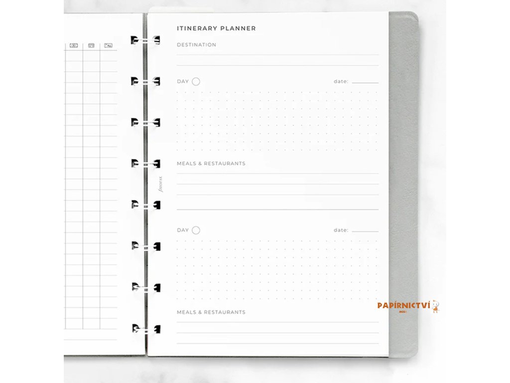 Tento praktický plánovač jednoduše vložte do svého plnitelného zápisníku Filofax Notebook formátu A5 a vydejte se na cestu k zachycení velkých i malých speciálních výletů. Vytištěno na papíře z udržitelných zdrojů a je vhodné pro plnicí pera.