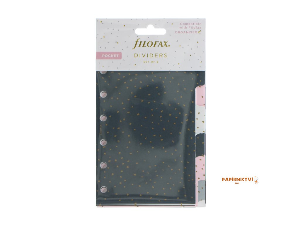 Dodejte svému diáři ještě více dokonalosti díky této barevné sadě šesti odolných plastových rozřazovačů z kolekce Confetti. Jsou speciálně navržené pro diáře Filofax velikosti Kapesní. V sadě najdete rozřazovače v černé, růžové, bílé a šedé barvě, a jsou potištěné z obou stran.Další vlastnosti