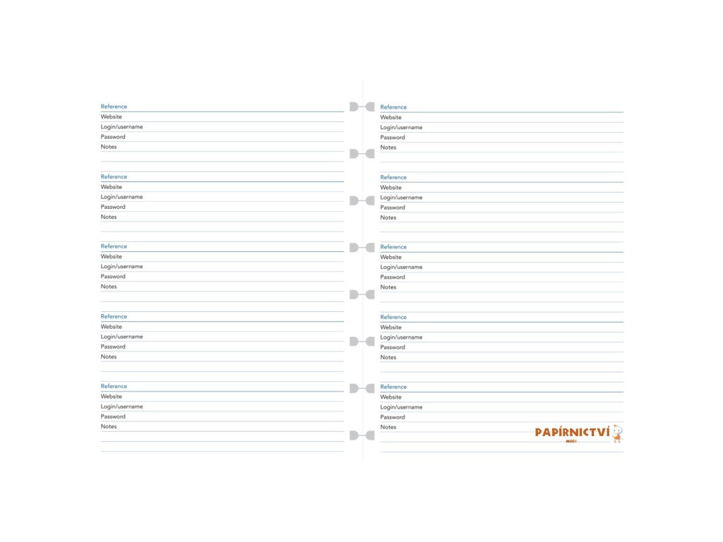 V dnešní době máme všichni vytvořeno nespočet uživatelských účtů a profilů na různých e shopech, firemních stránkách, fórech a mnoha dalších místech. A upřímně – kdo si je všechny pamatuje? Teď už přihlašovací údaje nikdy nezapomenete. Všechny budete mít přehledně na jednom místě ve vašem zápisníku, vždy po ruce.Další vlastnosti