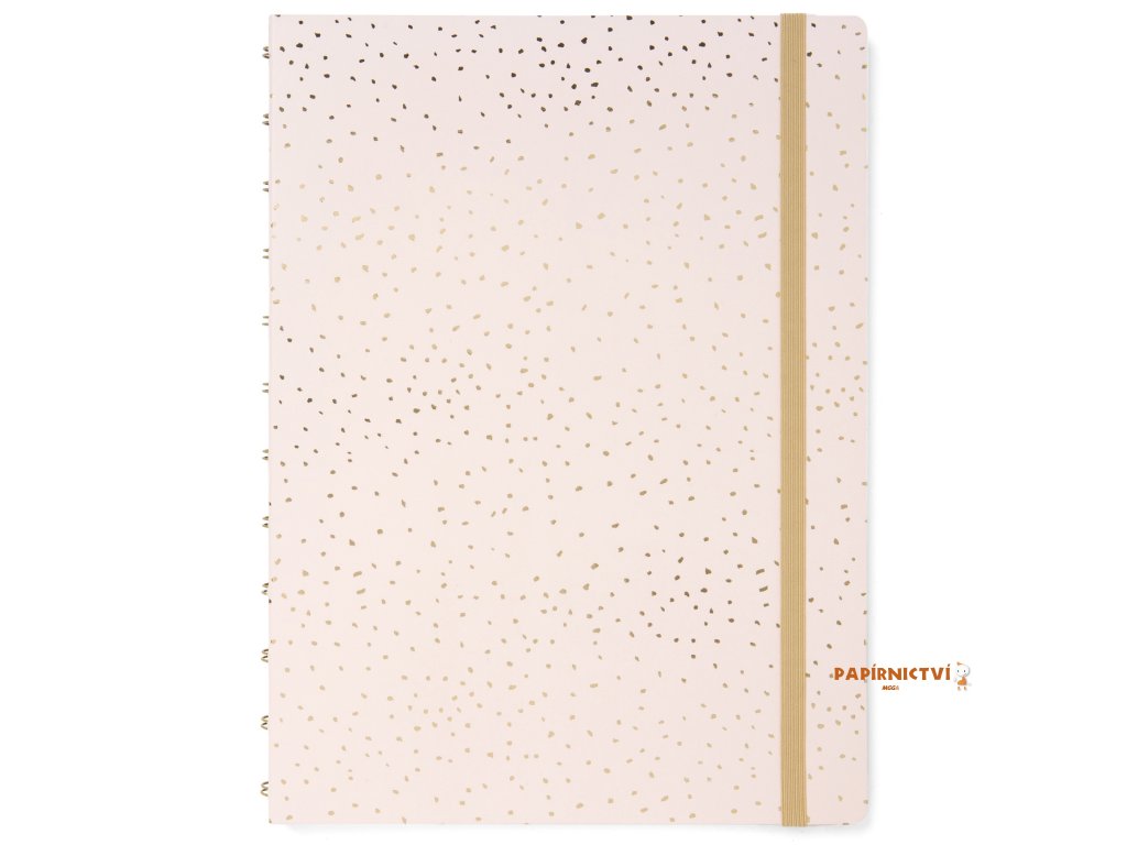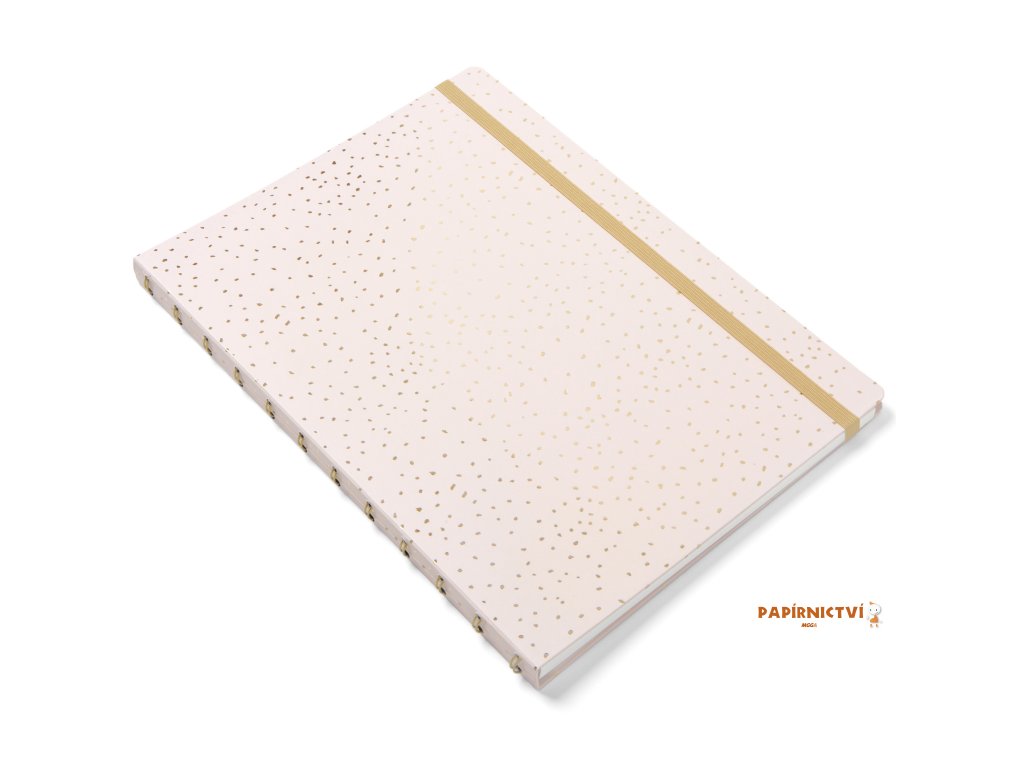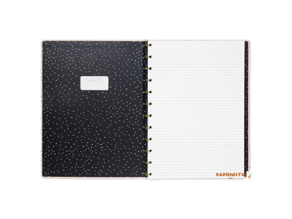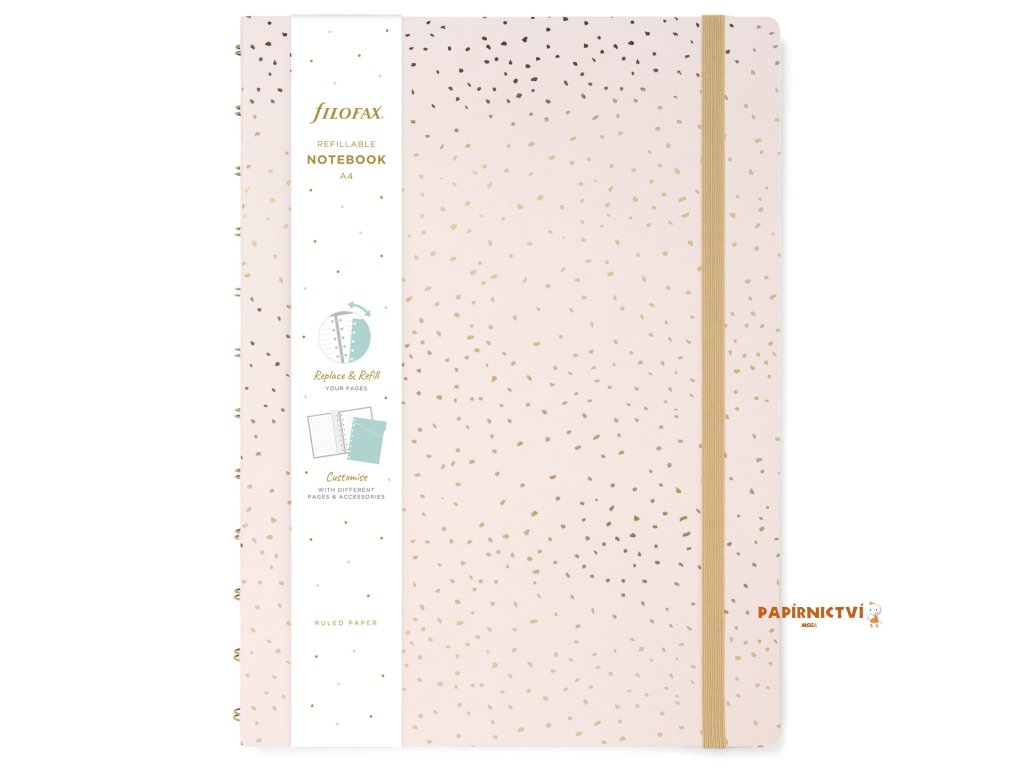 S tímto plnitelným zápisníkem Filofax Notebookem A4 z naší kolekce Confetti v provedení Charcoal bude každý Váš den mimořádný. Zápisník obsahuje pevné laminované kartonové desky s detaily ze zlaté fólie a vzorovanou vnitřní stranou desek. Jeho zlatá dvoudrátová vazba umožňuje Notebooku ležet úplně rovně a barevně sladěné elastické zavírání vám pomůže udržet vše na svém místě. Uvnitř zápisníku najdete linkované stránky vhodné i pro plnicí pera. Stránky můžete libovolně přemísťovat a nebo doplňovat. To Vám umožní vytvořit si zápisník, který opravdu vyhovuje Vašim potřebám. Využít navíc můžete naši širokou nabídku náplní a příslušenství.Obsah