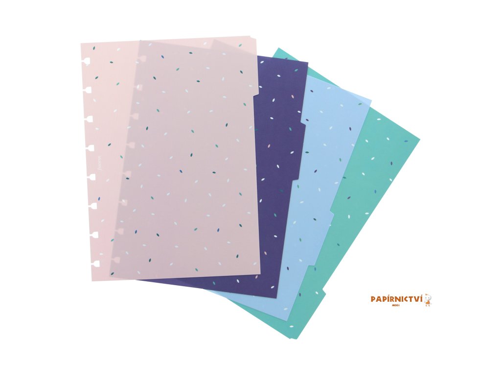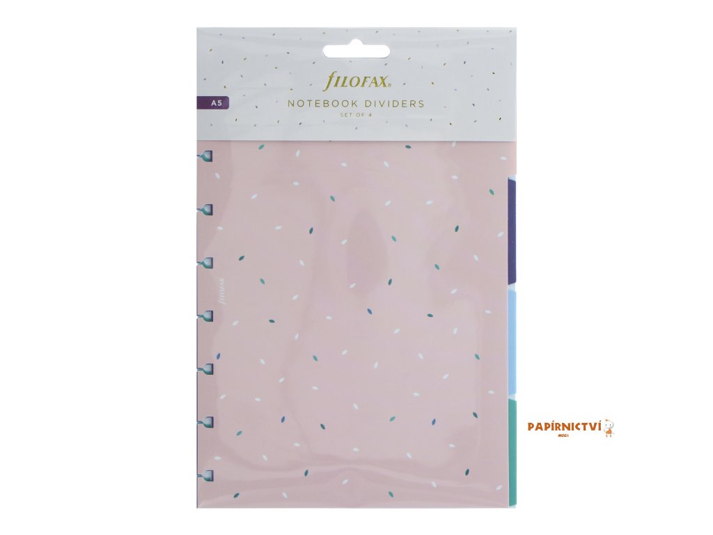 Plánujte a užívejte si! Dodejte Vašemu Filofax Notebook více elegantnosti s touto barevnou sadou čtyř odolných plastových rozřazovačů z naší kolekce Garden, které jsou speciálně navržené, aby ladily s Vašim plnitelným zápisníkem Filofax Notebook A5. Tato sada obsahuje oboustranně potištěné rozřazovače v barvách růžová, modrá, fialová a zelená.