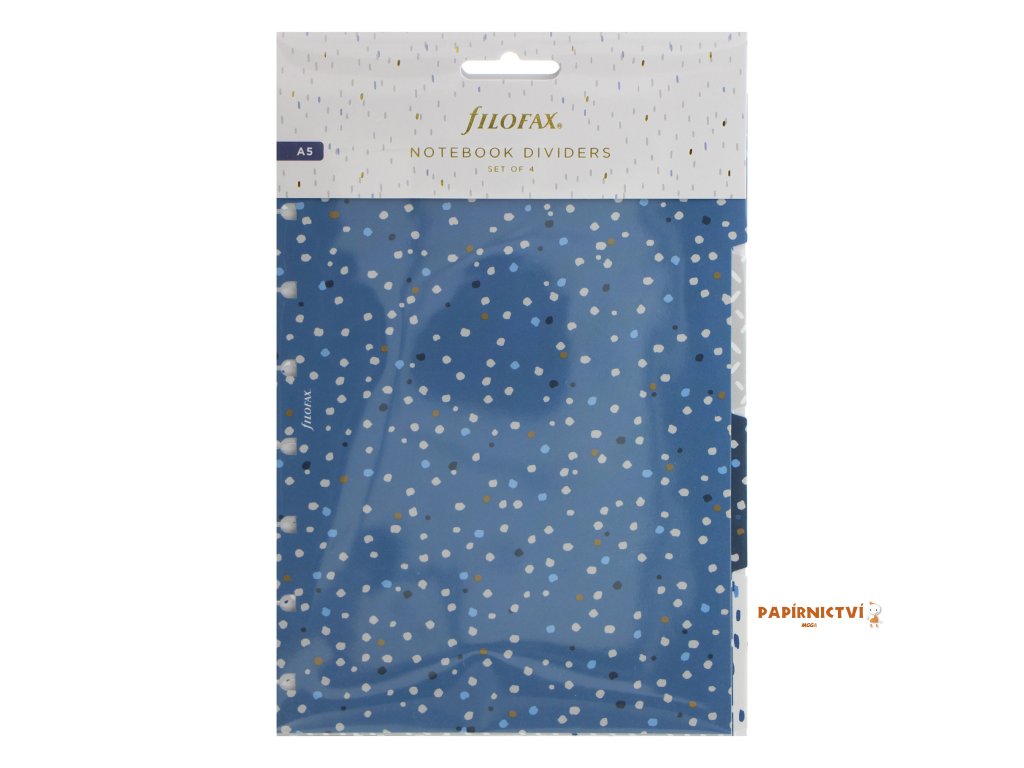 Plánujte a soustřeďte se! Dodejte Vašemu Filofax Notebook více moderní vzhled s touto barevnou sadou čtyř odolných plastových rozřazovačů z naší kolekce Indigo, které jsou speciálně navržené, aby ladily s Vašim plnitelným zápisníkem Filofax Notebook A5. Tato sada obsahuje oboustranně potištěné rozřazovače v barvách Indigo, navy, šedá a bílá.