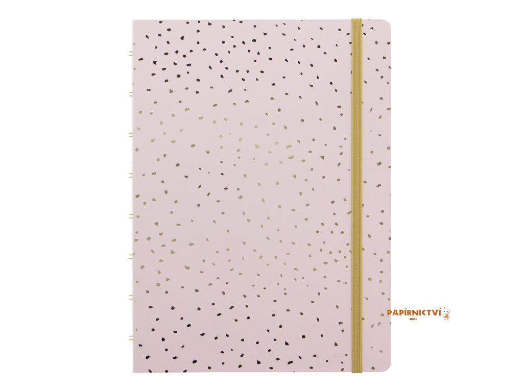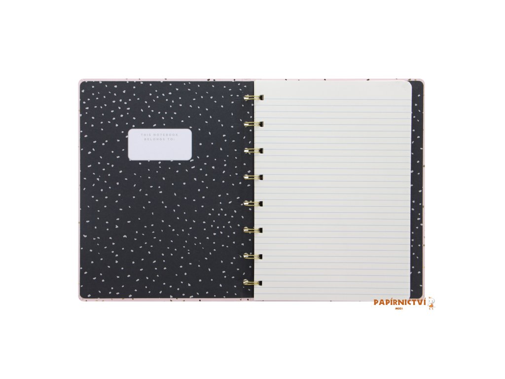 Zápisník obsahuje pevné laminované kartonové desky s detaily ze zlaté fólie a vzorovanou vnitřní stranou desek. Jeho zlatá dvoudrátová vazba umožňuje Notebooku ležet úplně rovně a barevně sladěné elastické zavírání vám pomůže udržet vše na svém místě. Uvnitř zápisníku najdete linkované stránky vhodné i pro plnicí pera. Stránky můžete libovolně přemísťovat a nebo doplňovat. To Vám umožní vytvořit si zápisník, který opravdu vyhovuje Vašim potřebám. Využít navíc můžete naši širokou nabídku náplní a příslušenství.