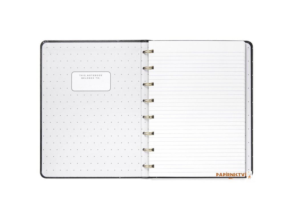Vaše poznámky a myšlenky budou jenom zářit v tomto znovu plnitelném zápisníku Filofax Notebook A5 v černé barvě z kolekce Moonlight, kterou zdobí zlaté detaily vzorovaná vnitřní strana desek v kontrastních barvách. Zápisník obsahuje linkovaný papír vhodný pro plnicí pero, který lze přemístit a nebo doplnit. Jeho zlatá dvoudrátová vazba umožňuje zápisníku ležet naplocho a barevně ladící gumička na zavírání vám pomůže udržet vše na jednom místě. Minimalistický, ale okouzlující styl.