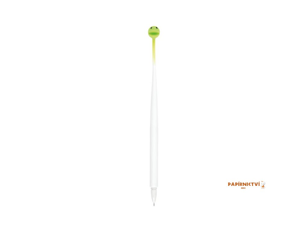 Gelové pero Fancy - pacman s modrou náplní a ksichtíkem. Pero má příjemný úchop a dobře se s ním píše.Hrot: 0,5 mm