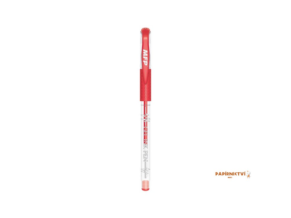 Gelové pero má pogumovaný úchop, a tak zabraňuje klouzání v ruce.