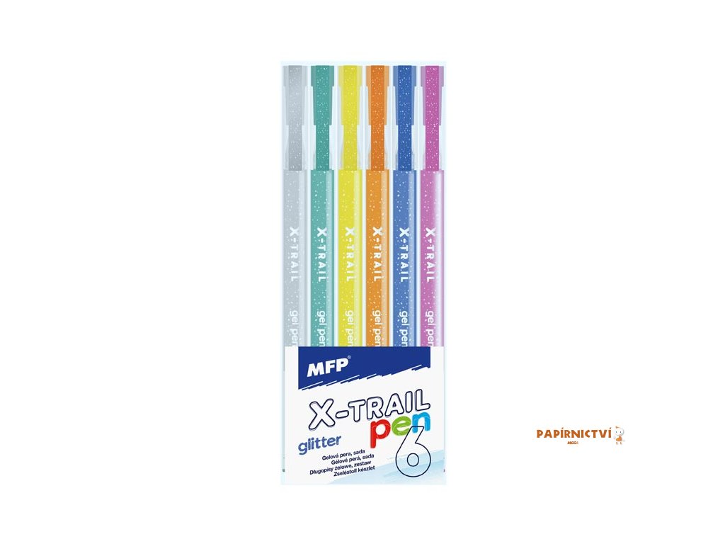 - 6 ks gelových třpytivých per (zelená, modrá, oranžová, žlutá, fialová, stříbrná)