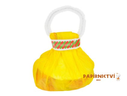 Pytlík s s papírovými serpentýnami pro hození rukou. 29 kusů 6 m dlouhých papírových serpentýn.