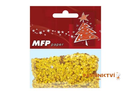 Vánoční dekorace, zlaté konfety ve tvaru hvězdy. Konfety jsou ve zlaté metalické barvě - vhodné pro dekorování stolů, nebo pro výrobu vánočních dekorací.