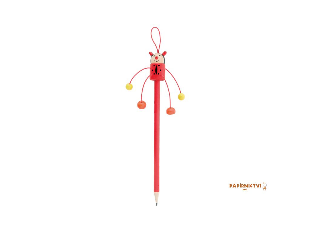 Dřevěná tužka s barevnou figurkou, neořezaná.