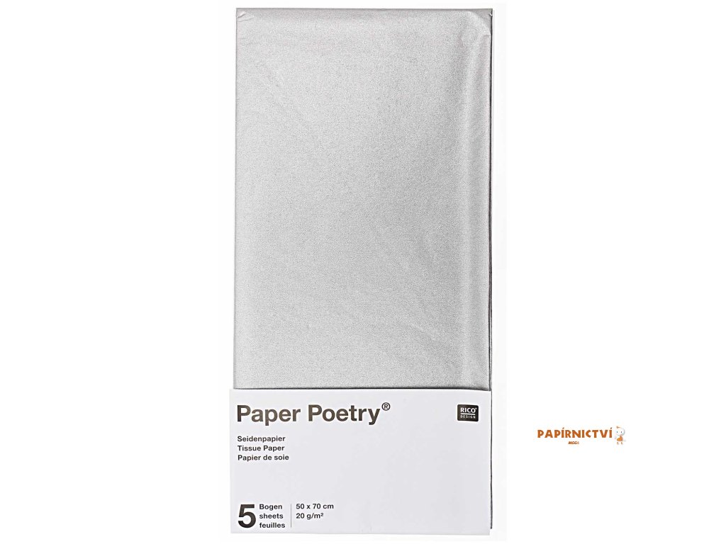 Hedvábný papír 50x70cm, 5ks, stříbrný