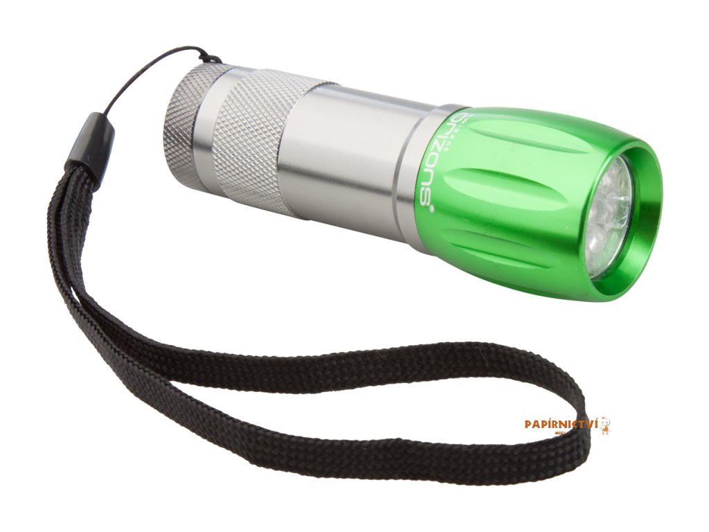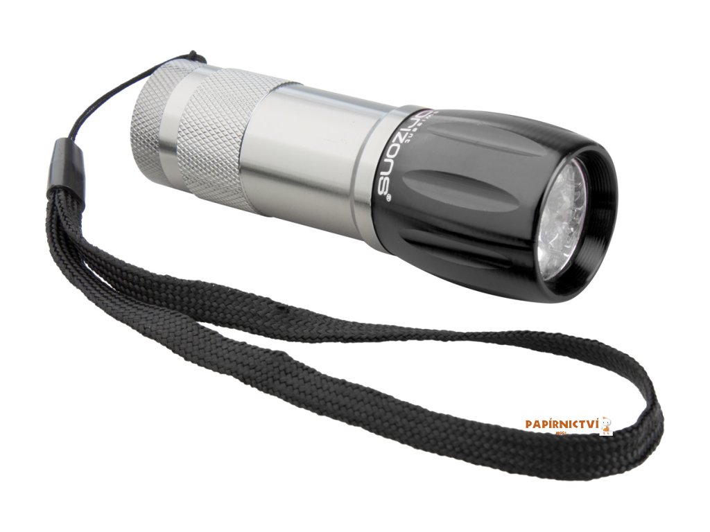 Hliníková baterka s 9ti LED diodami a páskem. Dodáváno bez 3 AAA/R03 baterií. Značkový produkt Orizons.