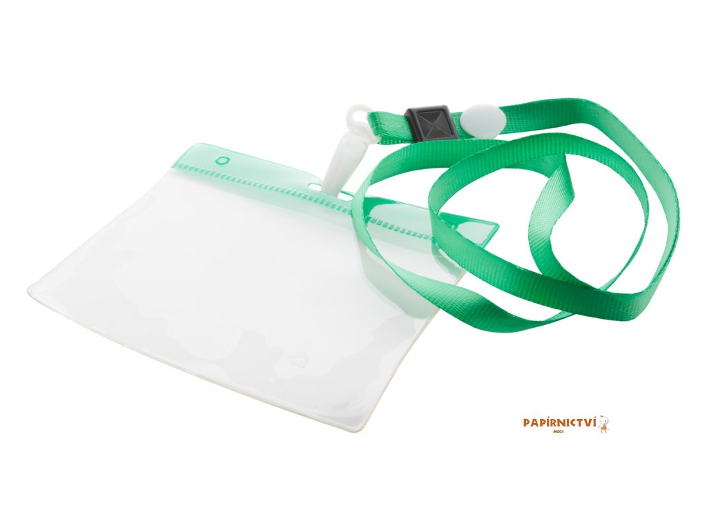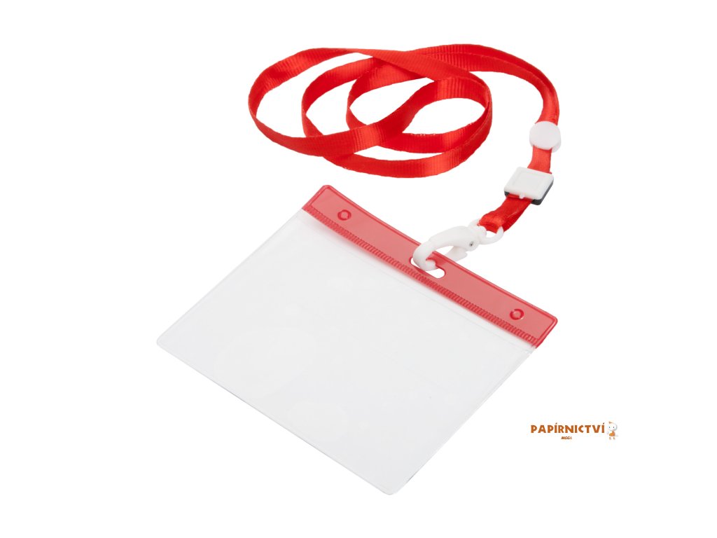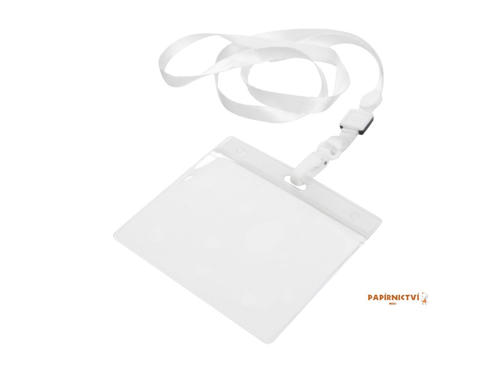 Lanyard s plastovou karabinkou a PVC držákem, polyester - barva šňůrky je v barvě visačky a nebo bílá.