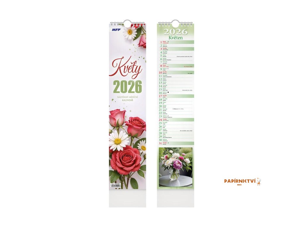 Nástěnný kalendář na rok 2026 vázankový s názvem Květy. Vhodný pro zapisování důležitých poznámek, k organizování různých událostí každodenního života. Možnost dotisku firemního loga a textu na spodní stranu kalendáře.TYP KALENDÁŘE: nástěnný