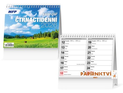 Stolní kalendář na rok 2026 s názvem Čtrnáctidenní. Vhodný pro zapisování důležitých poznámek, k organizování různých událostí každodenního života. Možnost dotisku firemního...