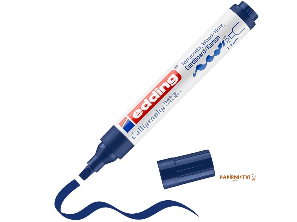 Kaligrafický popisovac 1455, ocelove modrý použijte pro permanentní ozdobné psaní a zdobení drsných nebo porézních povrchu. Ideální je pro psaní a kreslení na terakotu, drevo, papír, plátno. Popisovac je vybaven speciálním kaligrafickým hrotem, s nímž je možné tvorit od jemných až po široké tahy. Vytvárí šírku stopy v rozsahu od 1 do 5 mm. Obzvlášte vhodný je pro studenty kaligrafie, doporucujeme ho ale i pro jednoduchou domácí kreativu. Barevný pigmentový inkoust je rychleschnoucí, extrémne odolný vuci svetlu a odolný vuci rozmazání, opotrebení a povetrnostním vlivum. Neprosakuje skrz papír.Doplňkové parametry