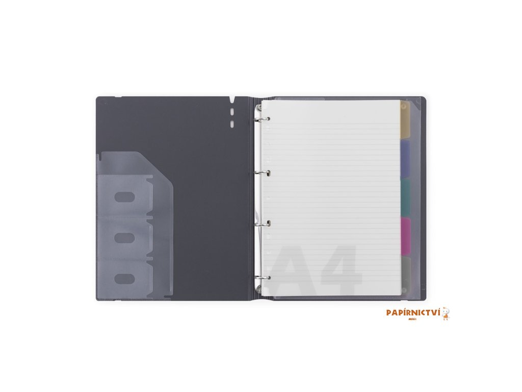 Karis blok z kolekce Verde: funkční a stylový čtyřkroužkový blok ve velikosti A4, vyrobený z odolného materiálu foam v modré barvě. Tento blok nabízí praktické rozřaďovače a vnitřní náplň: 30 stran linka, 30 stran tečka, 30 stran čisté (bez potisku). S uzavíráním na elastickou gumičku a kapsami pro vizitky. Verde Karis je ideální pro organizované a elegantní uchovávání informací. Čtyřkroužkový mechanismus umožňuje snadné přidávání nebo vyjímání listů. Skvělý pro profesionály i studenty, kteří chtějí spojit funkčnost s moderním designem.