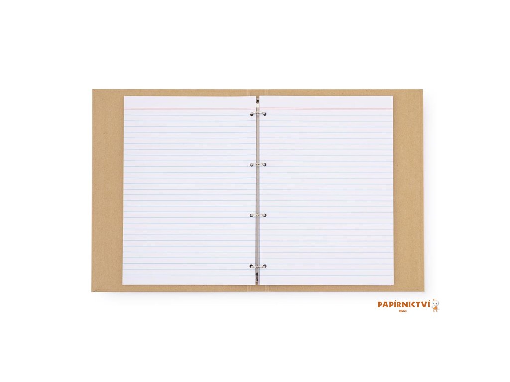 4 kroužková mechanika, náplň 100 linkovaných listů, . Moderní barvy nature.